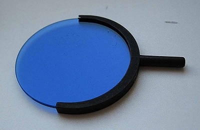 Das BG 12 ist ein ganz dunkelblaues Filter für die Fluoreszenz (Anregungsfilter Blau), das ist KEIN Lichtfarben-Kompensationsfilter!