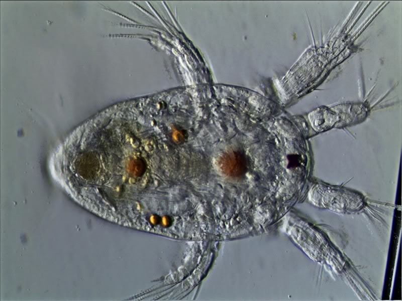 nachträglich noch einen schönen Dank für die Bestimmungen! Inzwischen habe ich in dem Pott mit den Nauplius-Larven noch eine Probe gezogen und eine mit der Pipette erwischt. Im anderen Licht wirkt sie so: