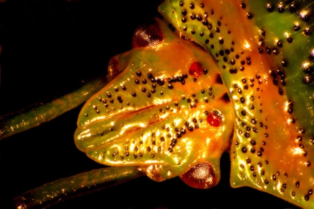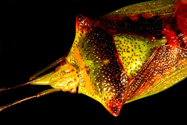 vielen Dank für den Tipp. Ich muss allerdings auch sagen, dass mich die schillernde Farbenpracht dieser Wanze fasziniert hat und die Fotos kaum überzeichnet sind. Ich habe mal in Fotoshop die Farbsättigung etwas heruntergeschraubt und denke, die Aufnahmen kommen nun dem Originaleindruck sehr nahe: