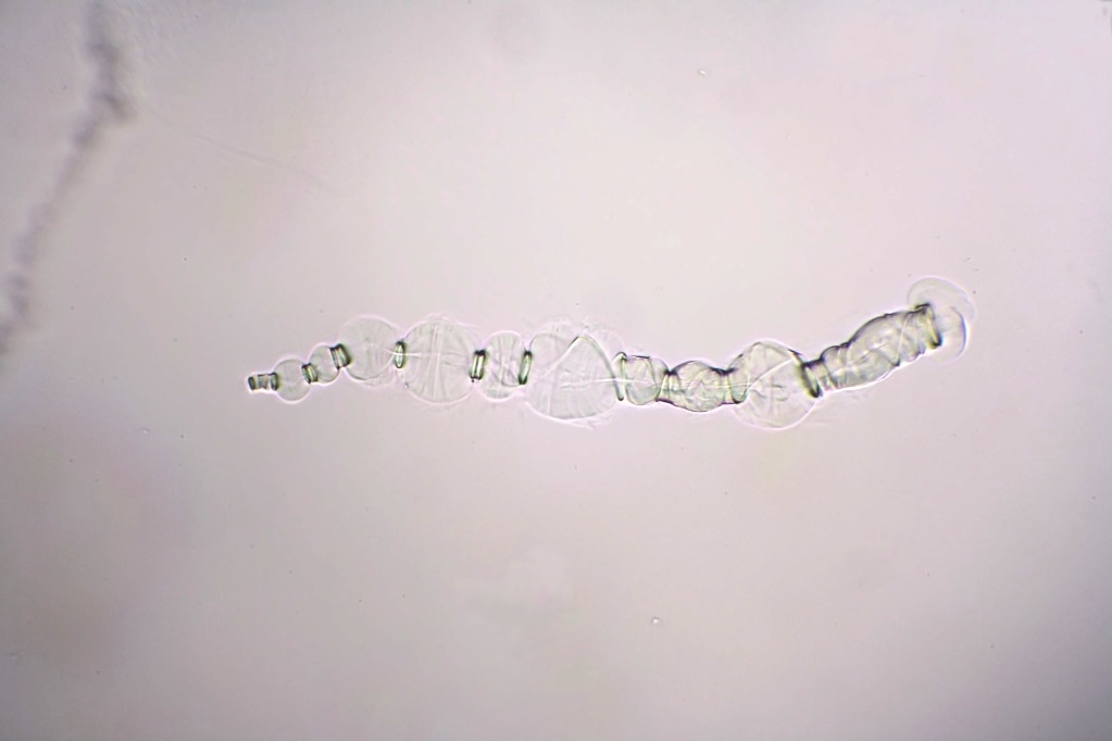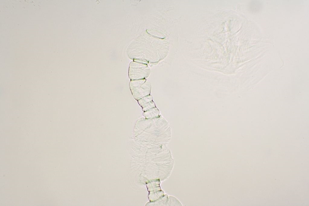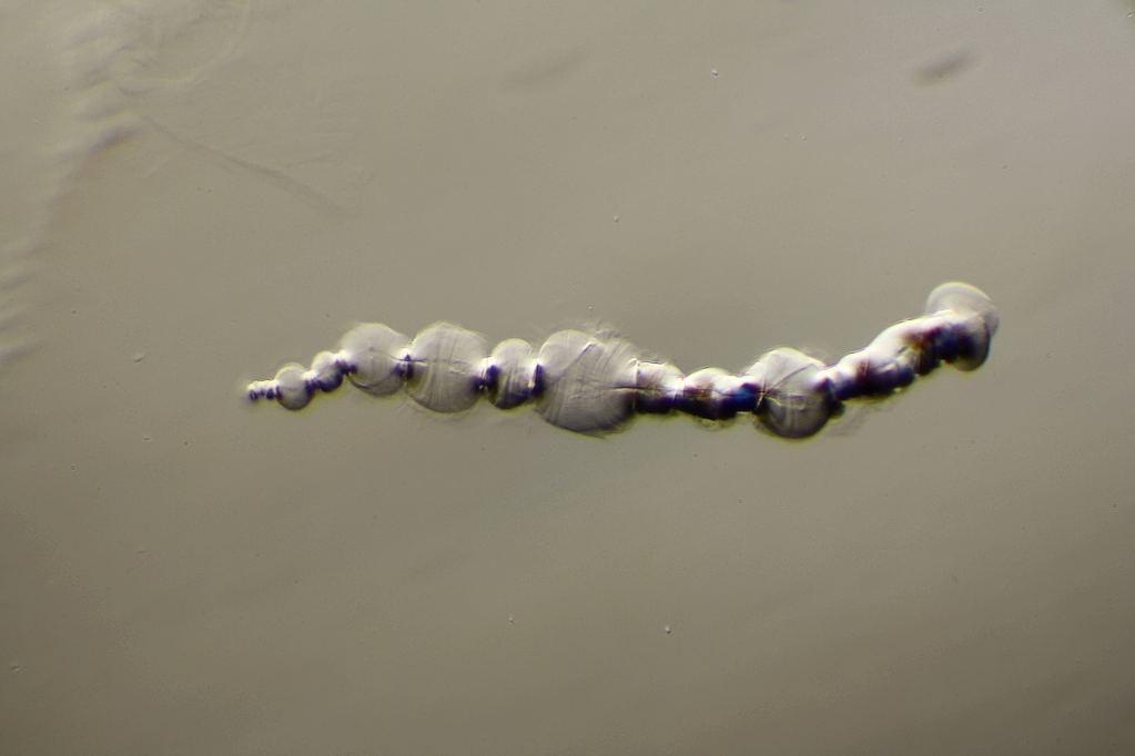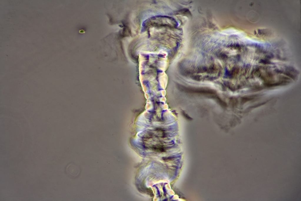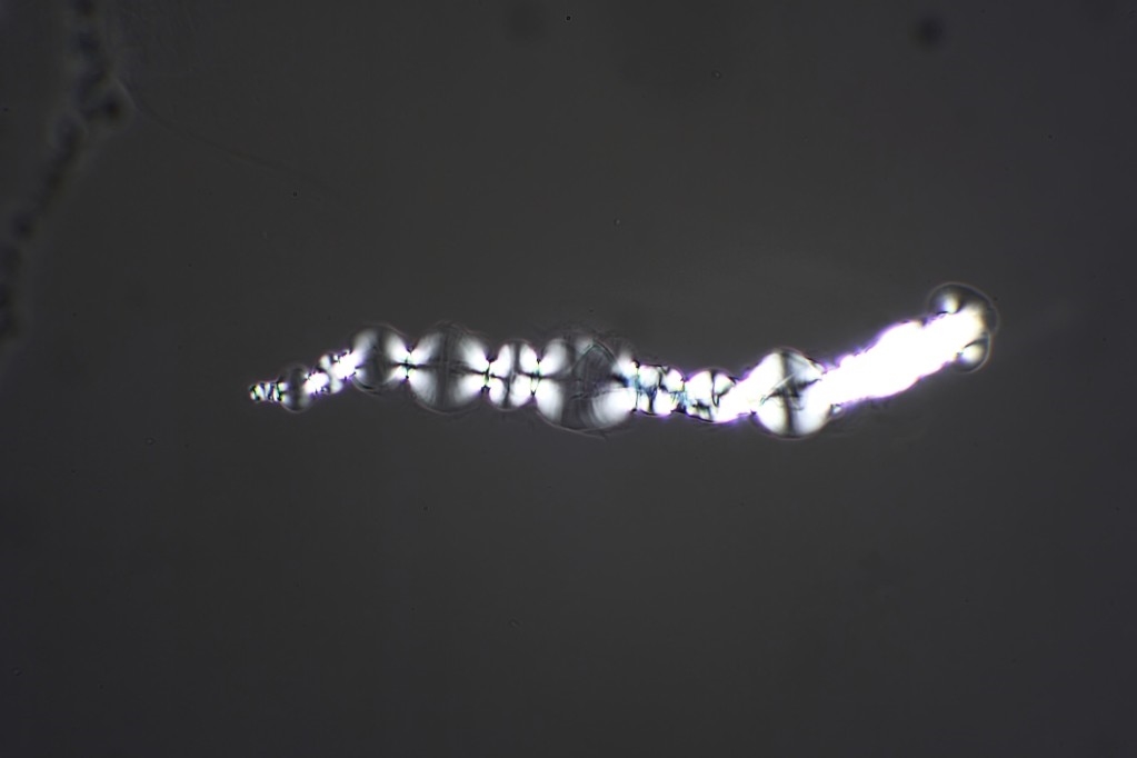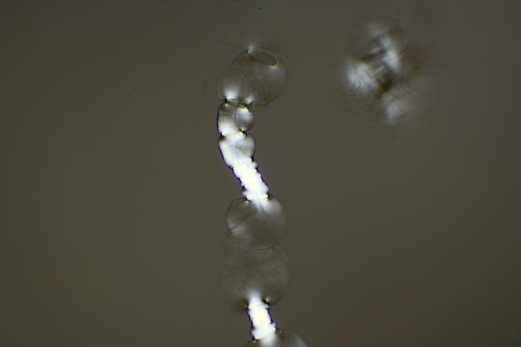 Leider habe ich beim Umbau auf Phasenkontrast das Deckglas berührt. Da ist die Faser platt geworden: