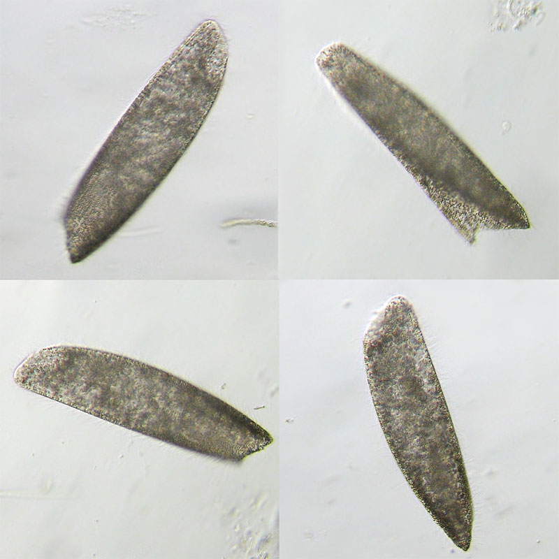 Länge: ca. 300-320 µm. Das Tierchen wirkte auf den ersten Blick wie ein verrottetes, eingerolltes Moosblatt und bewegte sich relativ träge im Kreis. Hat jemand von Euch diesen Ciliaten schon mal gesehen bzw. kennt gar den Namen?