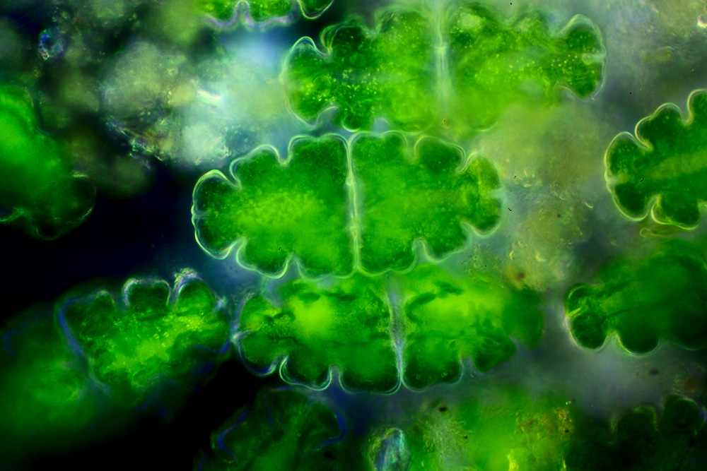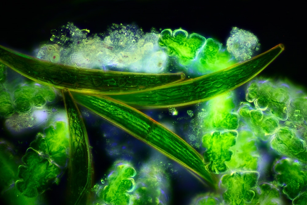 Die schönen kräftigen Farben der Zieralgen treten besonders im Dunkelfeld sehr schön hervor.