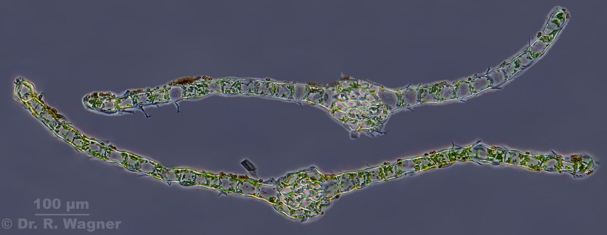 - Thalluspitze, oft gabelig verzweigt, Lamina einzellschichtig.