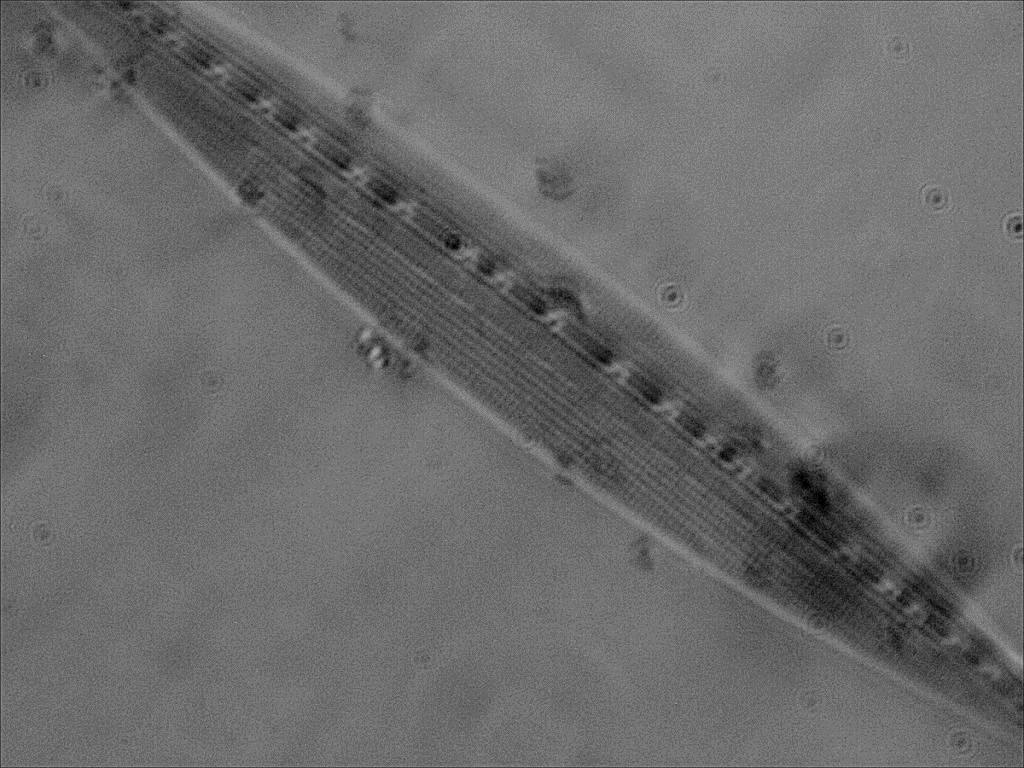 nachdem es mir kürzlich gelungen war, eine Diatomee Nitzschia sp. mit einer Porendichte von 48 Punkten auf 10µm aufzulösen, bin ich nun auf eine weitere gestoßen, die etwa die halbe Größe hat und eine noch höher Porendichte von mehr als 50 Poren auf 10µm: