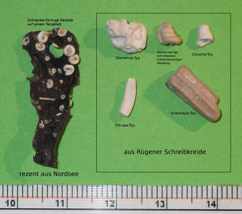 entschuldigt, wenn ich diesen alten Beitrag nochmal ausgrabe, aber endlich kann ich wieder Bilder einstellen und da möchte ich doch einen kurzen Überblick über die Serpel in der Rügener Kreide geben, den ich aus meiner Sammlung zusammengestellt habe: