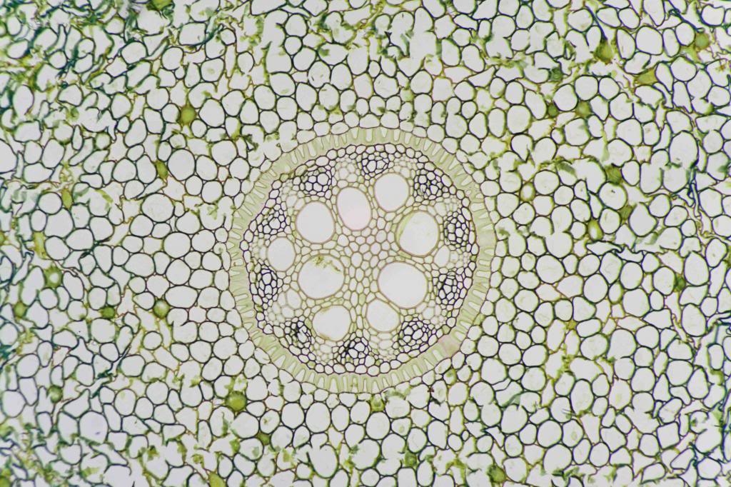 4.) Mikrotomquerschnitt eines Stängels von Urtica spec., befallen von Nesselseide, Präparat von Michael Dillberger (Aufnahmen mit PlanApo 25)