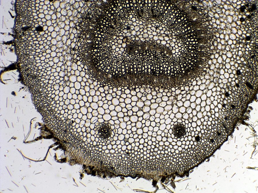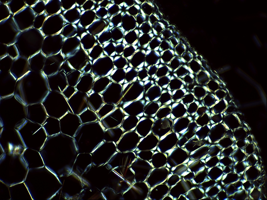bei einem Mikroskopiefreund habe ich einen ungefärbten Schnitt beguckt. (Pflanze leider unbekannt - wuchs im kleinen Hausgarten).