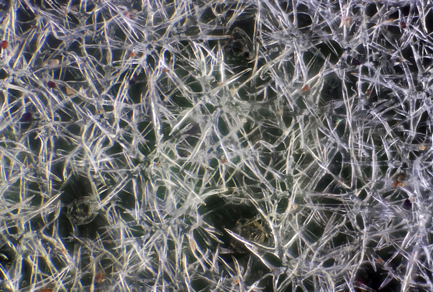 die Haare sitzen überall auf den Blättern, oben und unten.