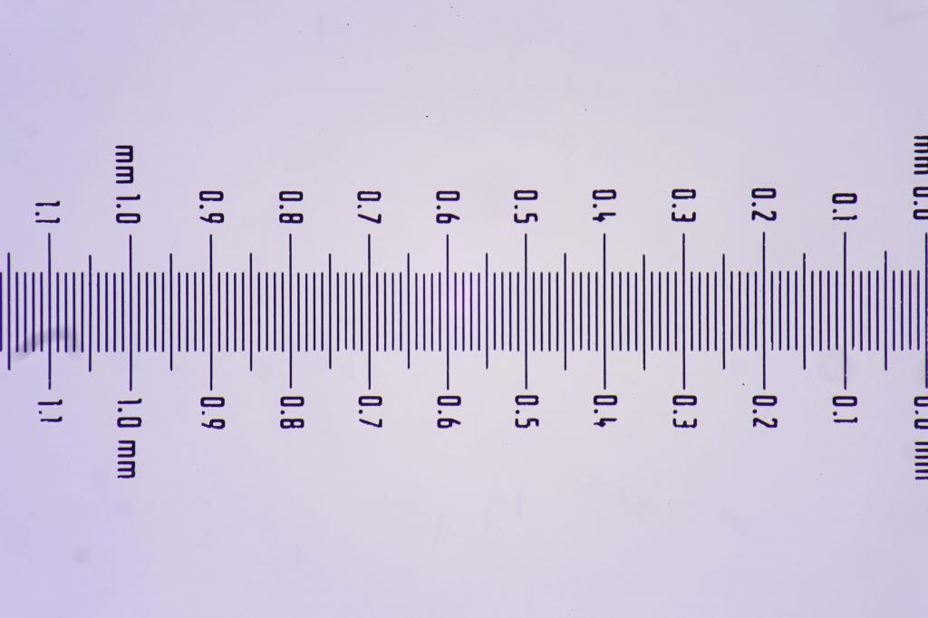 Weil's so schön ist, zunächst das allseits beliebte Okularmikrometer, mit PlanApo 10/0.32 aufgenommen: