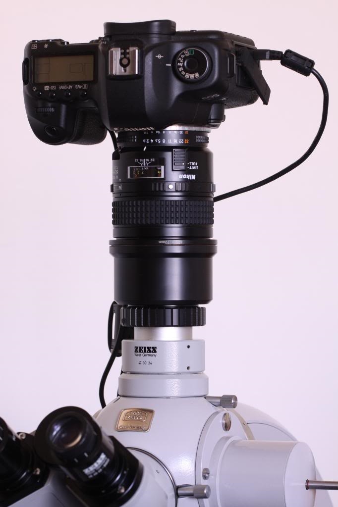 Als Übertragungs-Objektiv ('Relais-Optik') wurde von Christian ein AF-Micro Nikkor 1:2.8/60mm gewählt, und als Okular sollte ein Zeiss S-KPL 10x/20Br Verwendung finden.