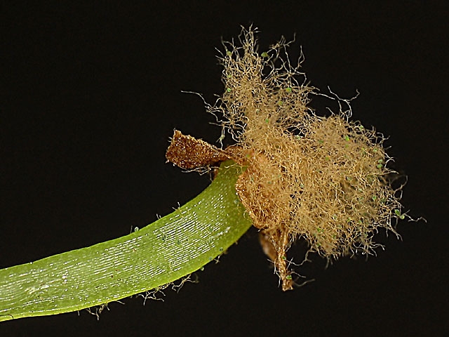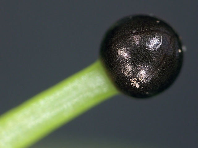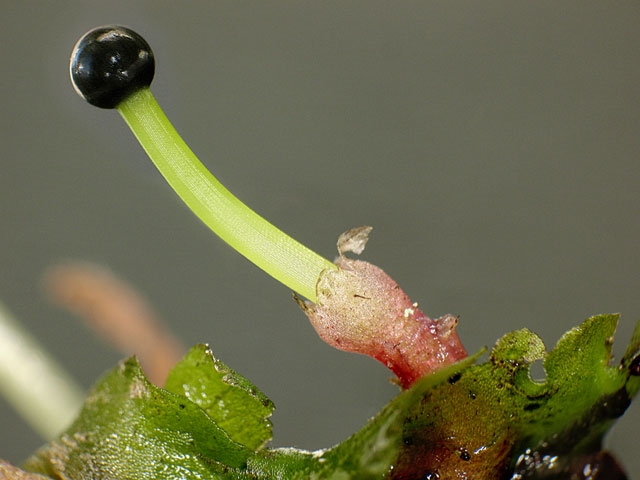 vielen dank für das Interess; richtig, ich vergaß bei der Aufstellung meiner "Aufnahmephilosophie" das Stativ: die Aufnahmen sind ohne Stativ entstanden. Vielleicht wäre ein kleines Stativ manchmal von Vorteil, doch liegt der Nutzen dieser Aufnahmeeinheit gerade in dem geringen Gewicht und der Fähigkeit, ohne Stativ (aber geblitzt) Makroaufnahmen hinzukriegen.  Ich darf vielleicht an dieser Stelle noch den Vorteil von Kameras mit dreh- und schwenkbarem Display hervorheben, für Biologen eigentlich ein "Muss", da es so ohne weitere Verrenkung bzw. auf dem Boden rumzukriechen möglich ist, kleine Objekte wie eben hier die Sporangien von der Seite aufzunehmen und dadurch das gesamte Objekt scharf zu kriegen(Bild2). Ich wähle dabei das Menü Blendenvorwahl, wobei die max. Blende bei 8 liegt, was nicht viel ist. deshalb ist die Tiefenschärfe, wie ich finde, nicht so hoch wie sie bei f=32 sein könnte, aber dafür hat man kein Problem mit Beugungsunschärfen (die ich bei Lupenobjektiven an meiner Analog-Spegelreflex durchaus feststellen konnte). Der Kamerablitz leuchtet dabei das Objekt tadellos aus (über die Lichtleiter). Die automatische Scharfstellung funktioniert dabei ebenfalls.