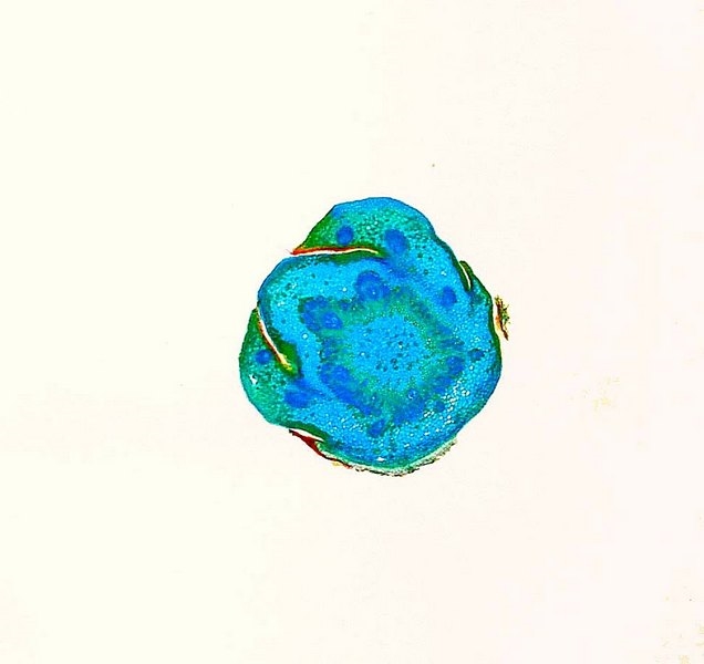 Querschnitte durch die Blattknospe, den Blattstiel und den Spross