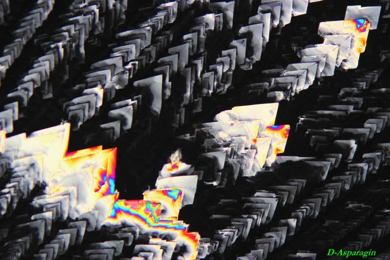 Eines der Präparate hat sich weiter entwickelt und schöne Kristalle gebildet. Alles auf einem Präparat - soweit zum Thema: kann man aus der Morphologie auf die Substanz schließen! ;)
