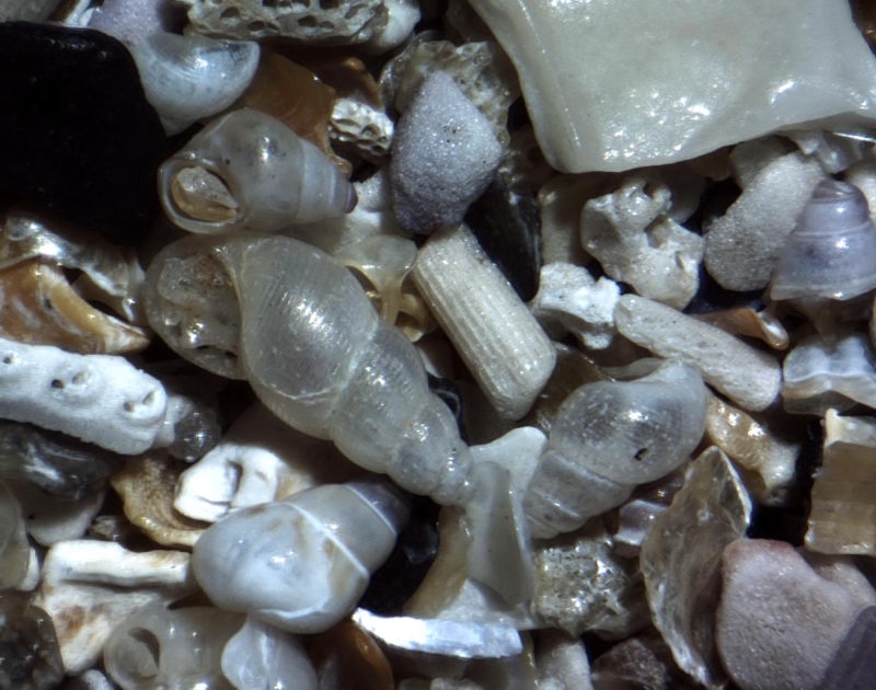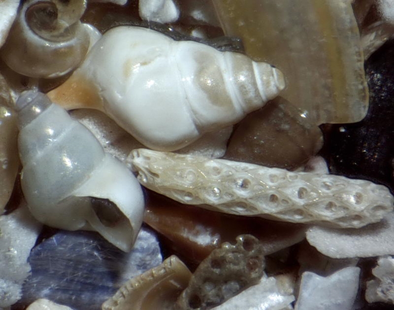 mir gefällt's auch und ich entdecke sogar noch eine benthische Formanifere, (reichlich) Schnecken, Bryozoen-Bruchstücke und allerlei Schwamm-Skelette.