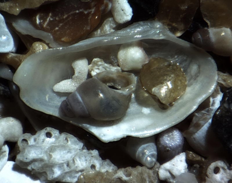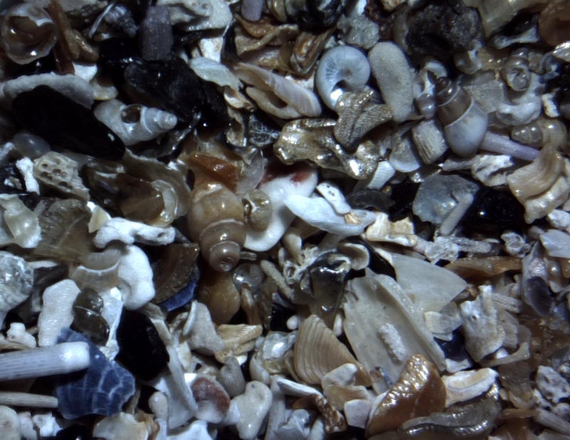 ein netter Kollege brachte mir Sand aus Nordengland (Bamburgh) mit, der sich nach kurzem Draufschauen als Muschelschill entpuppte. Unfassbar, wieviel verschiedene Muschelarten, Korallen, Schwammnadeln, Seeigelstacheln sich in dem Sand tummeln.