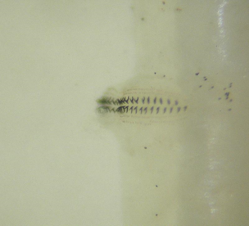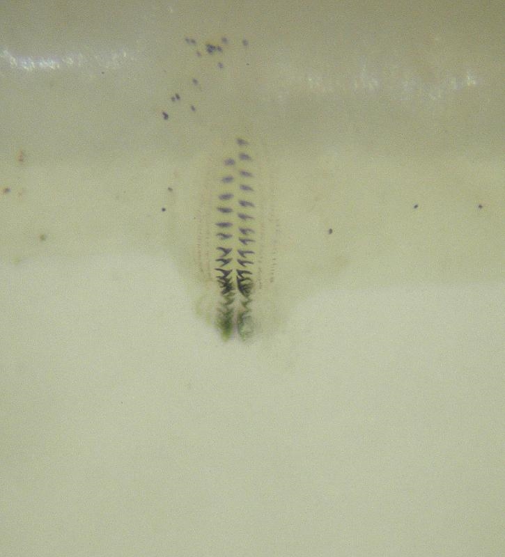 Ein bißchen von der Grütze hab ich unters Stemi gelegt, dabei eben auch die Maden. An deren Unterseite befanden sich mehrere Doppelreihen kleiner Zähnchen. Wahrscheinlich um mangels Gliedmaßen etwas mehr Widerstand zu haben bei der peristaltischen Vorwärtsbewegung. Sachdienliche Hinweise hierzu gerne!