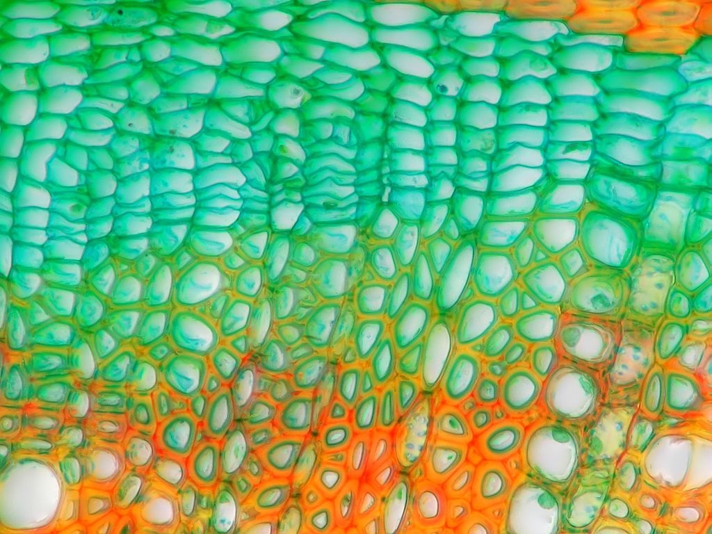 heute möchte ich den Thread hier um einige Aufnahmen vom zweijährigen Spross des Rosmarins ergänzen. Präparation und Färbung erfolgten analog zum Blatt, nur dass ich den Spross freistehend schneiden konnte.