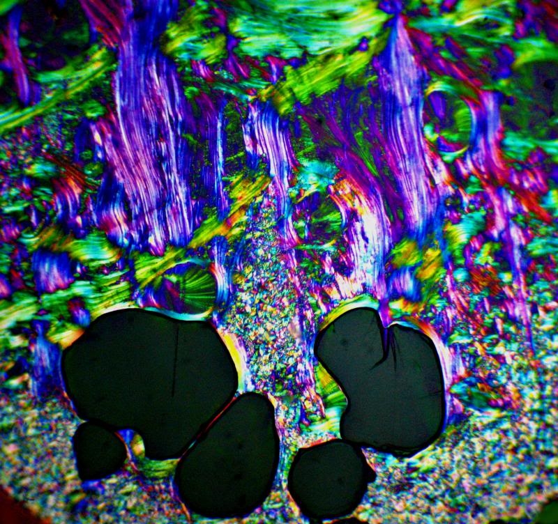 seit vielen Wochen ruht bei mir ein Geschirrspülmittel unter dem Deckglas. Es hat schöne Füssigkristalle erzeugt, z.B. diese.