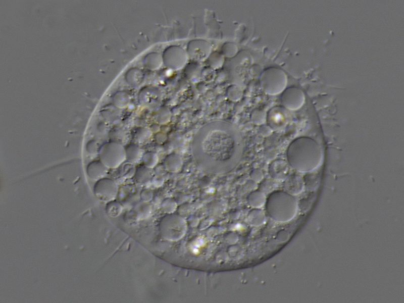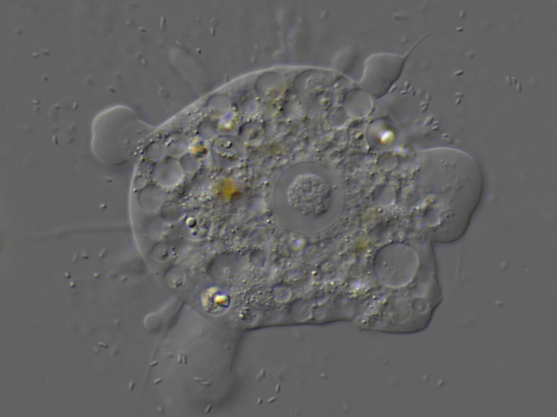 Hier eine mir unbekannte, aber recht photogene, Nacktamöbe. Sie stammt aus einer Probe einer Kieselalgen-Wasserblüte aus einem Fliessgewaesser.