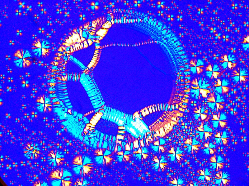 in der eintrocknenden Probe eines farblos-klaren Haarshampoos fand sich eine besonders schöne Ringstruktur (D=150µm):