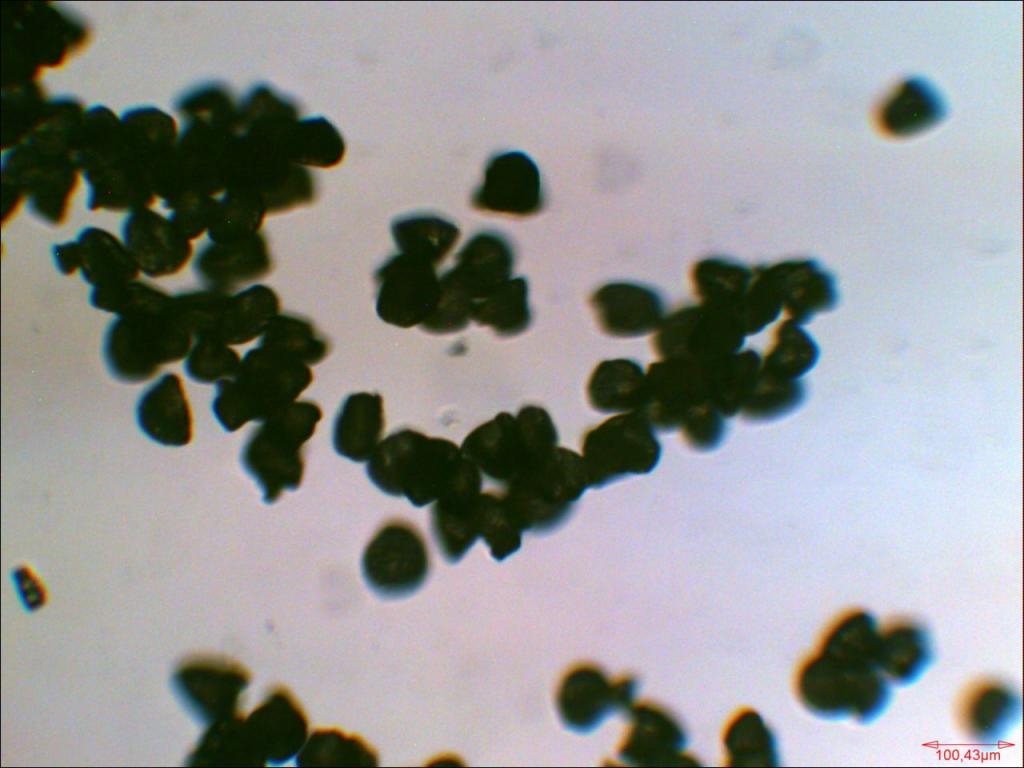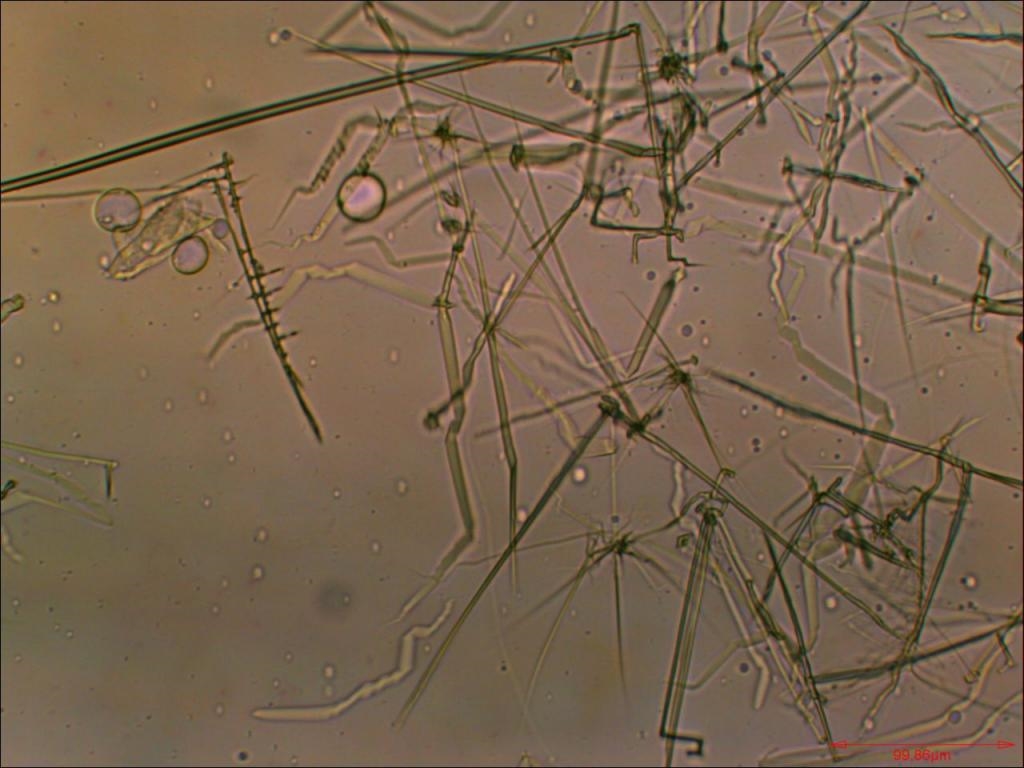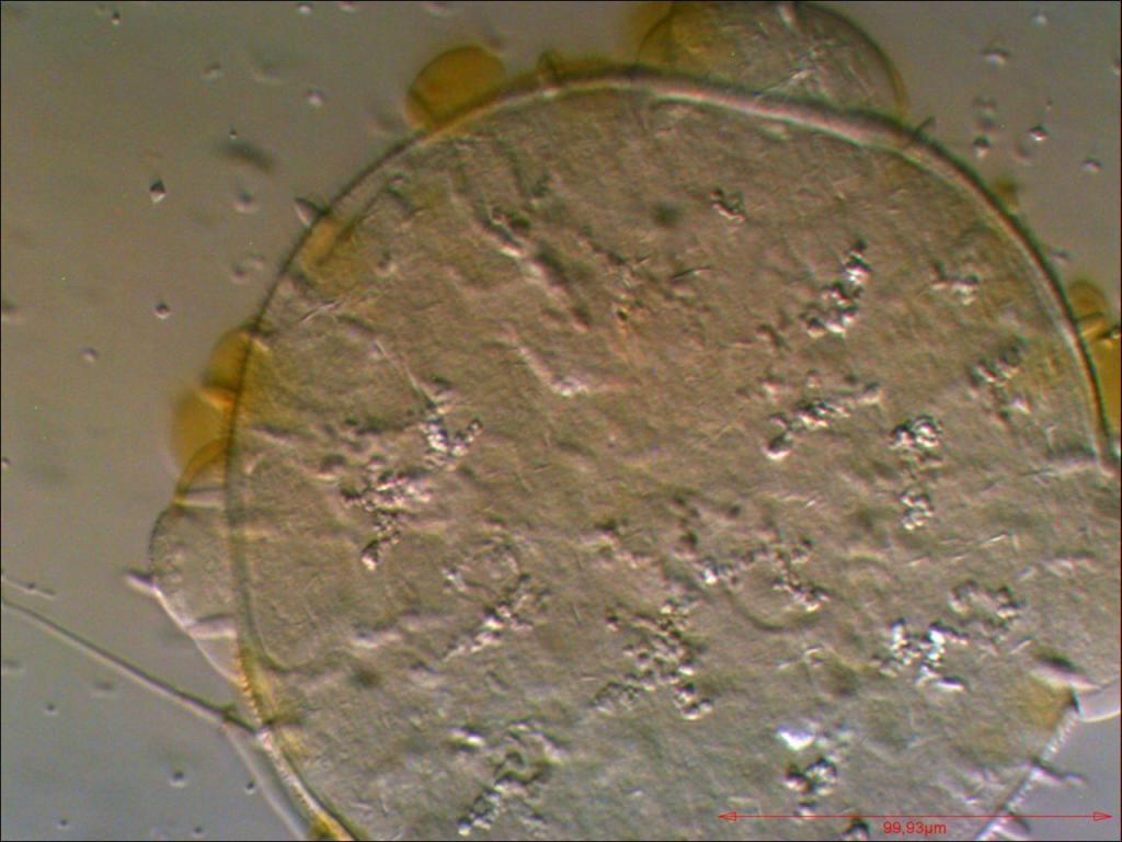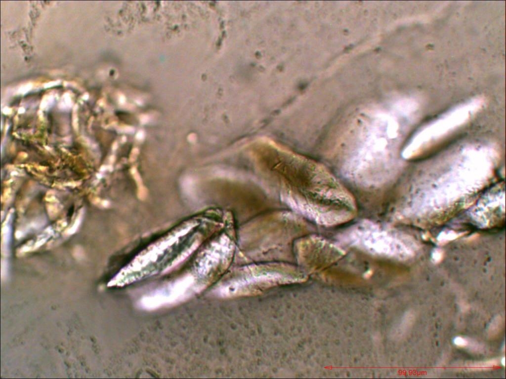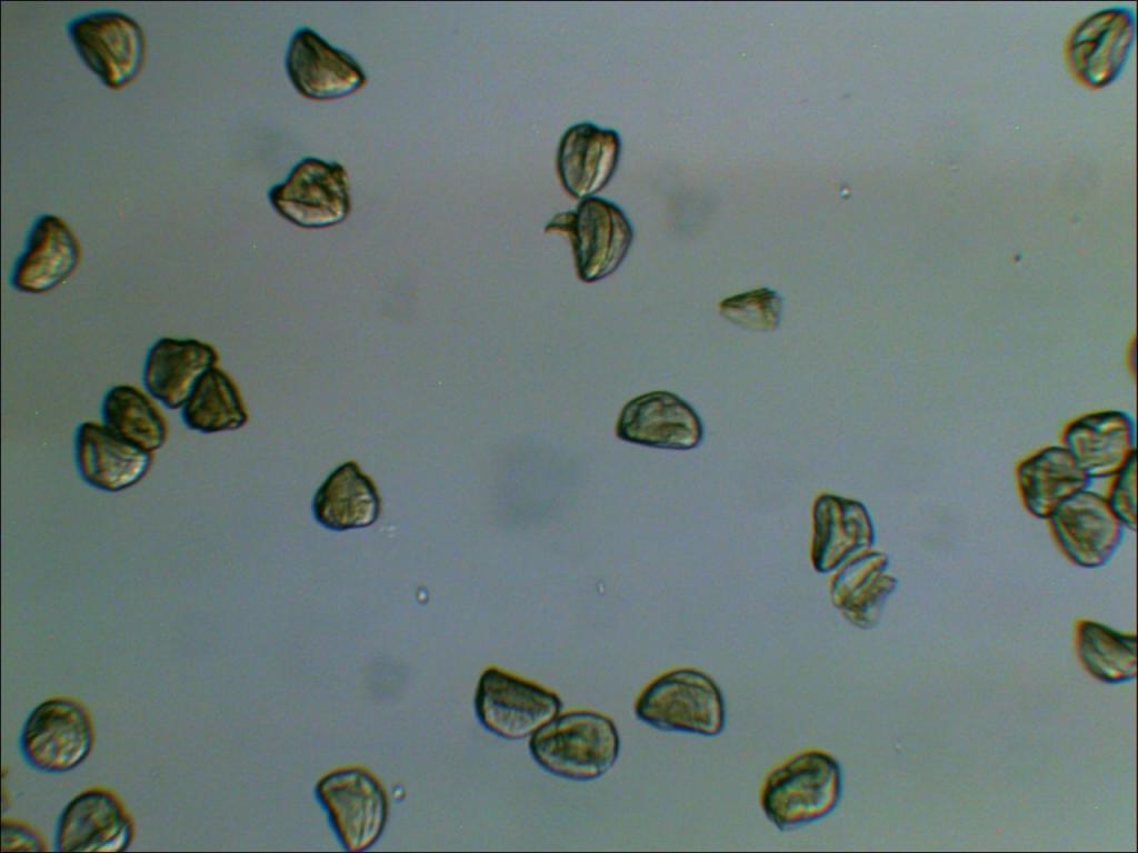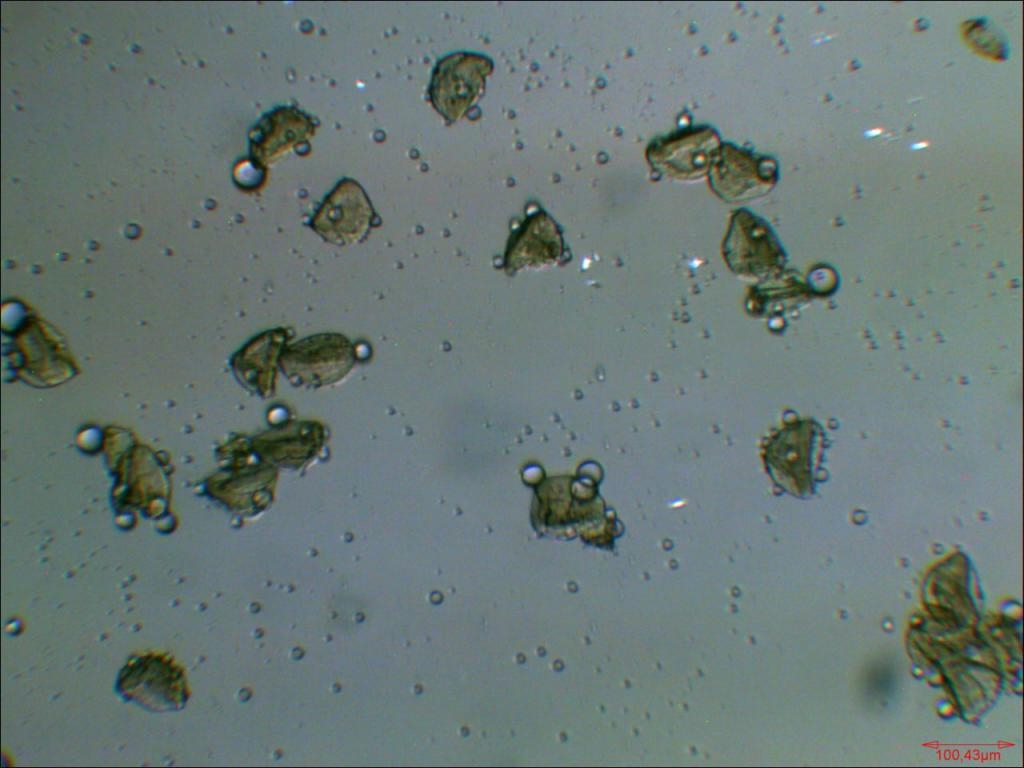 Pollen von Zucchini. Hier ein weiteres Magnacoltypisches Artefakt: die Bildung von Nadeln, welche optisch aktiv sind.