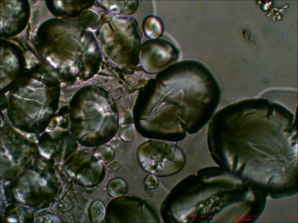 Außerdem Bildung von Artefakten, welche geplatzten Stärkekörnern ähneln, aber optisch nicht aktiv sind.