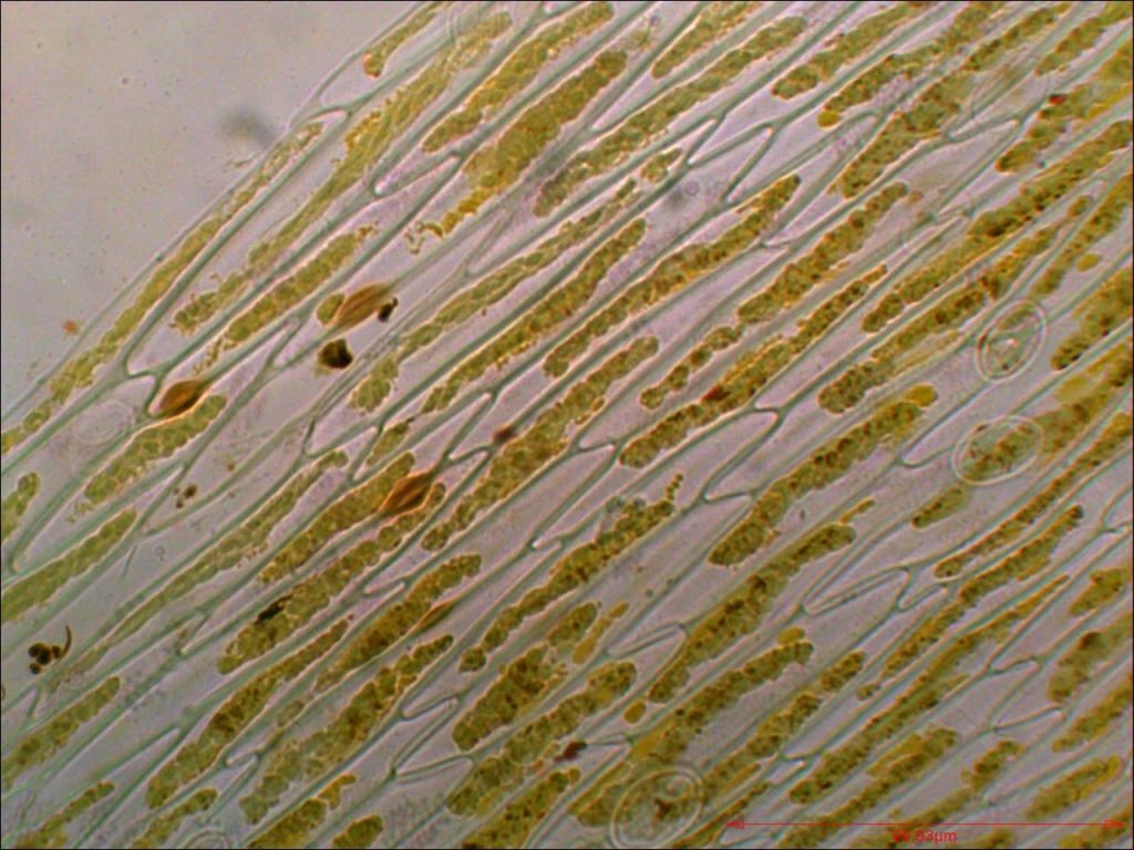 Algen aus Kaltwasseraquarium, abgetropft und direkt eingebettet.