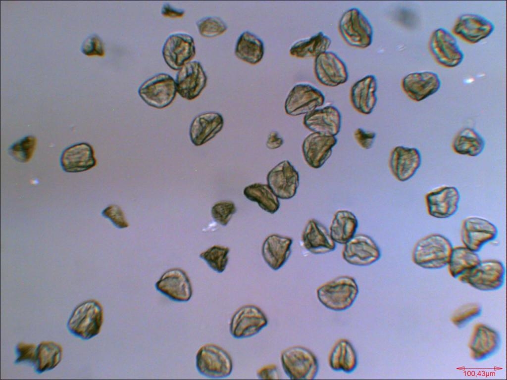 Deutlich ist eine Quellung der Pollenkörner zu erkennen (ein Wasserpräparat verhielt sich ähnlich)