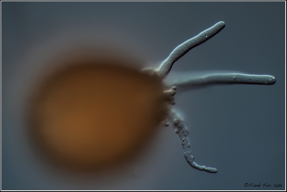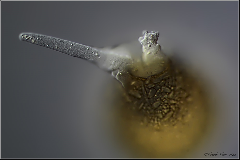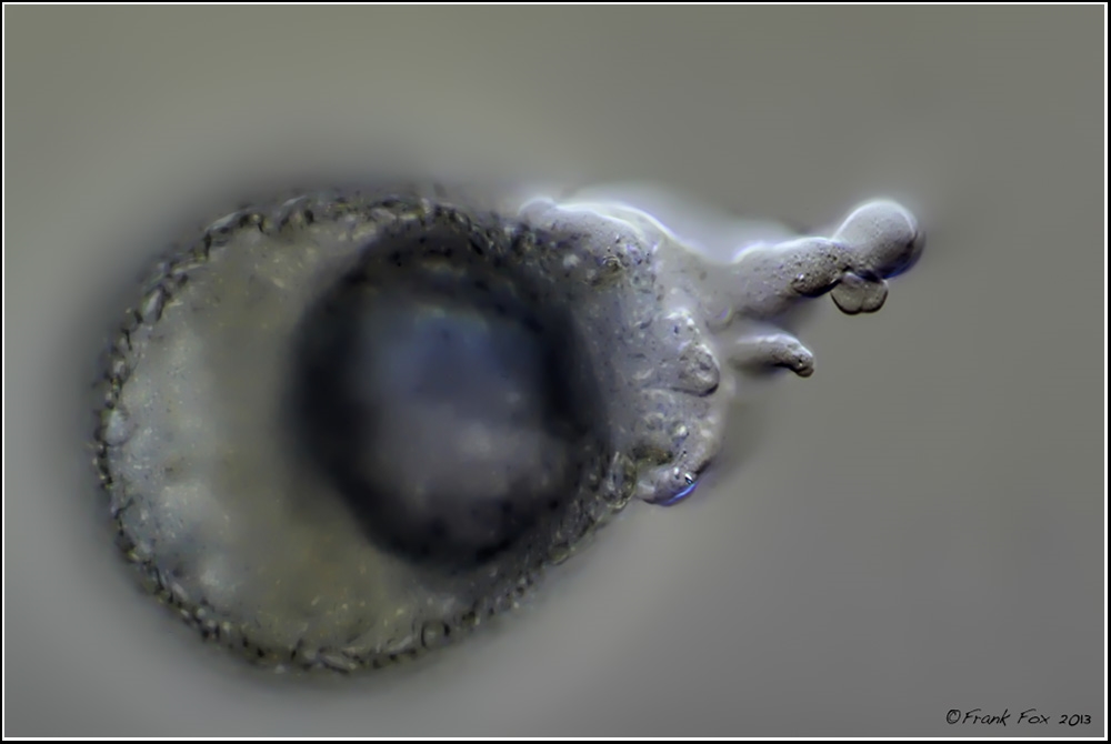 die Herausforderung, ich wollte in die Öffnung der Amöbe hinein fotografieren und dabei im richtigen Moment die Pseudopodien erwischen.
