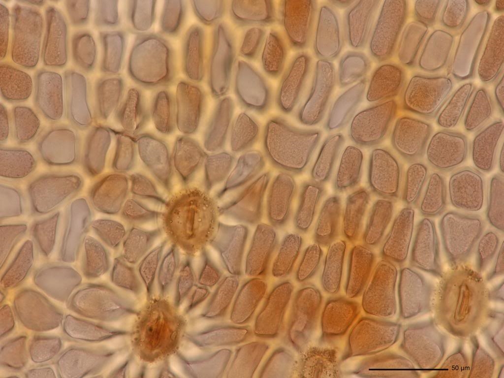 in aller Regel betrachten wir die Spaltöffnungen von aussen. Hier zeige ich nun Spaltöffnungen von innen wie sie sich an der Innenseite einer Mooskapselwand zeigen.