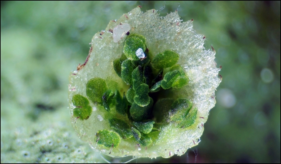 Brutbecher mit Brutkörpern (und einigen Sandkörnchen)