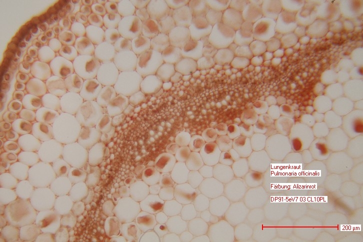 Botanik: Lungenkraut mit Alizarinrot gefärbt *