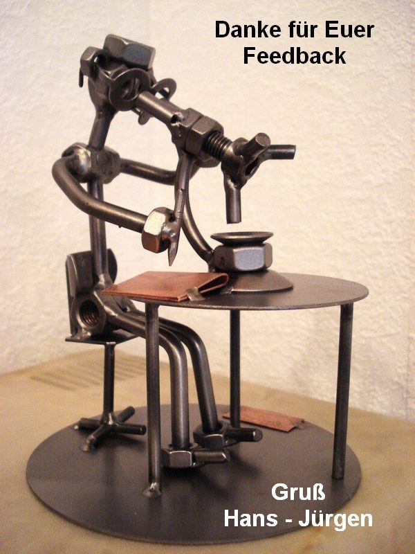 Rückmeldung sind willkommen, ich bin jederzeit an Weiterentwicklung interessiert, Vorschläge zur Verbesserungen und Varianten meiner eingestellten Bilder sind daher keinerlei Problem für mich ...