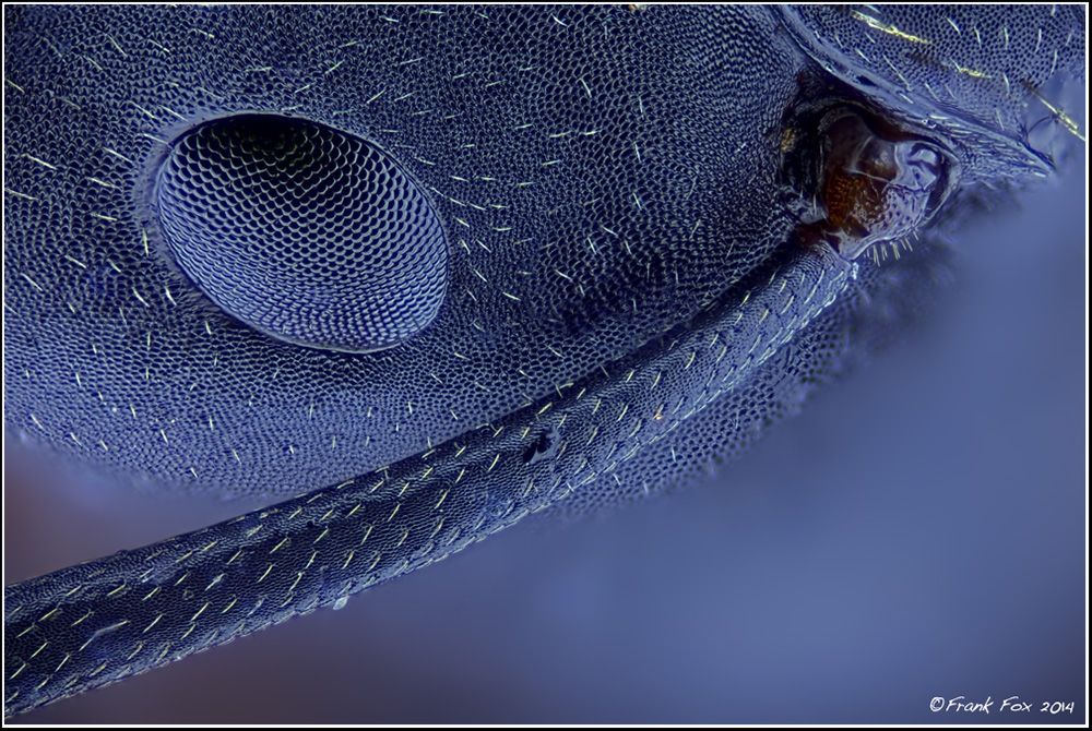 die Antennengrube ist schön zu erkennen + Chitinpanzer mit der Oberflächenstruktur