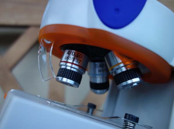 Etwas bessere Objektive und ein besseres Okular als bei Kindermikroskopen üblich reichen nicht. Eine einfache Kondensorlinse, wie sie Olympus an den Hufeisen-Schulmikroskopen verbaut hatte, würde erst die Fähigkeiten der Objektive erschliessen. Das Plastikstativ hat zwar meinen sechsjährigen Sohn auf anhieb angesprochen ist jedoch zu wenig stabil. Die Fokussierung ist Glücksache.