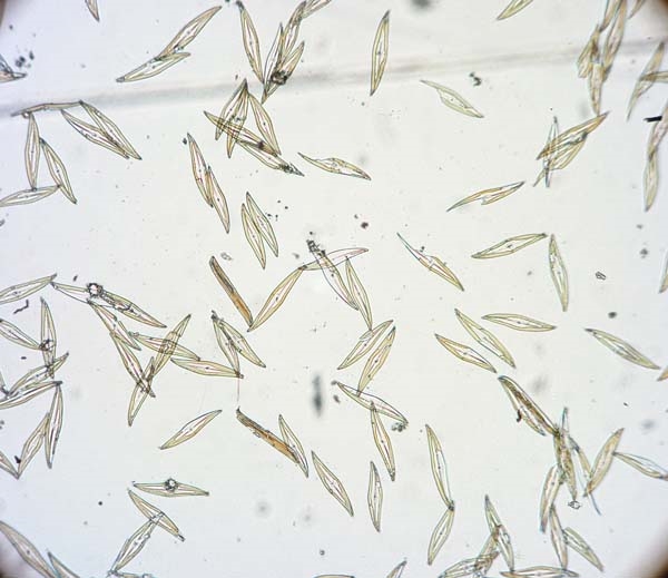 400-fache Vergrösserung, eigentlich müsste die Schalenstruktur aufgelöst werden.