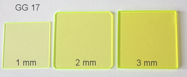 hier noch ein Nachschlag zur Fluoreszenz. Die GG 17 sind auch in 1mm Stärke schon gelb gefärbt.