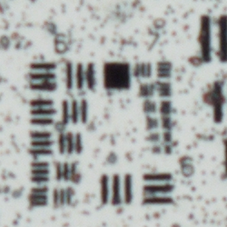Die Blendenöffnung des MC ist bei Blende 11 etwa 25% größer als die des MD-Objektivs, was einer halben Blendenstufe entspricht. Das macht sich auch im Auflösungsvermögen bemerkbar, wie dieser Vergleich zeigt (obere Zeile: MC-Objektiv,   untere Zeile MD-Objektiv)