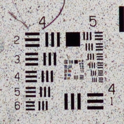 Meine Bilder zeigen auch, dass mit der Objektivkombination (ohne Kamera!) eine solche Auflösung erreichbar ist, allerdings liegt die Kontrastübertragung wahrscheinlich nur in der Größenordnung von 10%.