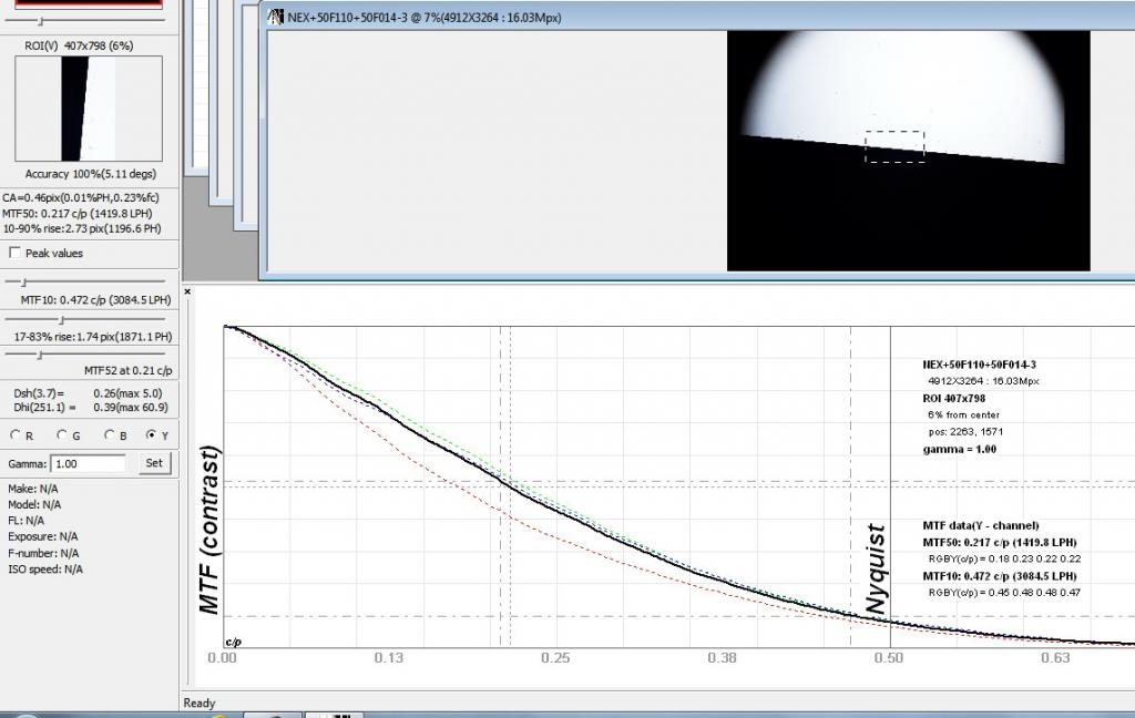 Hier noch das (übereinstimmende) Ergebnis einer Quick-MTF Messung mit der Objektivkombination an der NEX-5N: