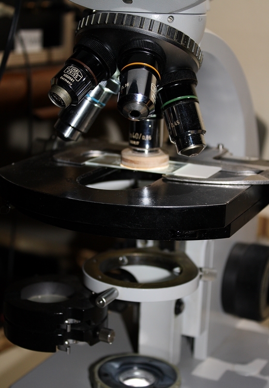 Das Präparat wird am Mikroskop im Hellfeld zentral betrachtet und fotografiert. Für dieses Bild wurde ein Zeiss Planapo 40/1.0 Oel m.l. 160/- verwendet. Es wurde nicht gestapelt.