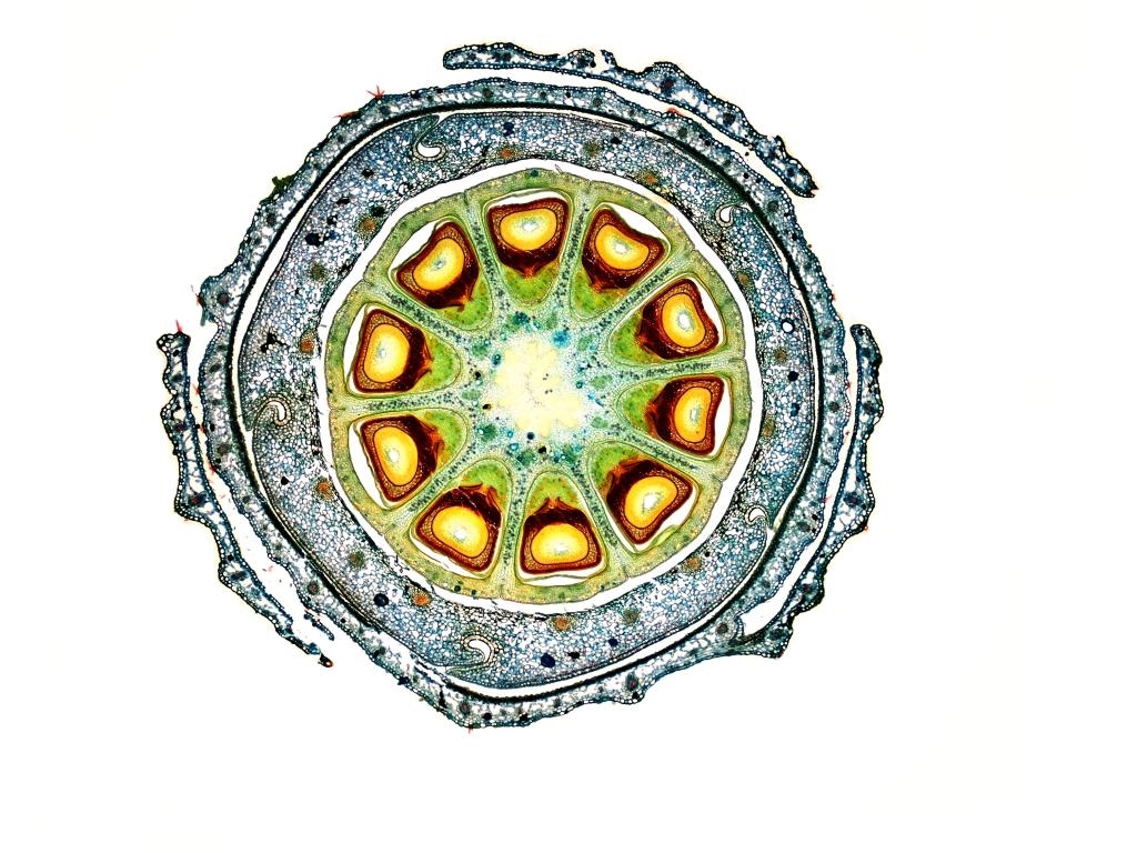 zur gefälligen Betrachtung ein Querschnitt durch die Blütenknospe der Wegmalve (Malva neglecta), gefärbt mit W3AsimII.  Von außen nach innen Kelchblätter, Fruchtknoten und Frucht mit zehn Samenanlagen. Die Pflanze ist einheimisch und gedeiht im Gegensatz zu den größeren Zierformen der Malve im Straßenbegleitgrün.