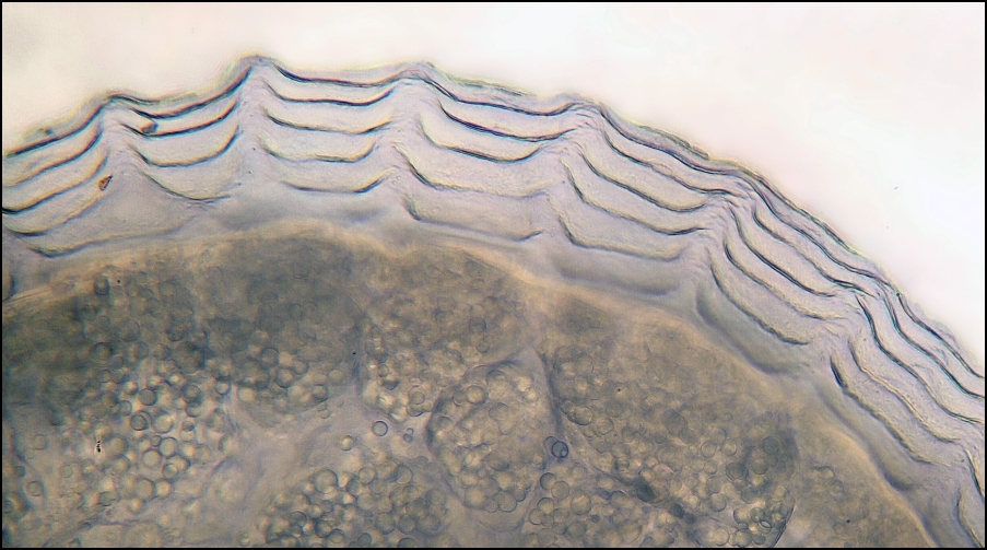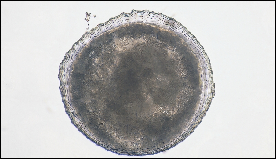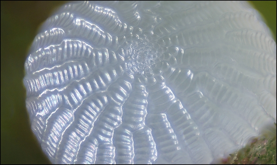 Es handelt sich wohl um ein Schmetterlingsei, gefunden auf Zitronenmelisse.