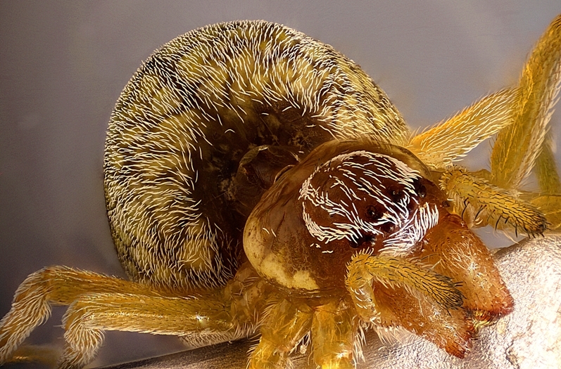 Am Anfang war die Spinne tatsächlich grün wie auf dem ersten Foto, ich habe das Gefühl, das es nicht nur am Weißabgleich liegt und sie jetzt eher braun ist. Kann auch sein, dass es an der Beleuchtung anders ist, da ich ja den Winkel verändert und dabei auch die ganze Spinne und auch die Lampe neu positioniert habe.