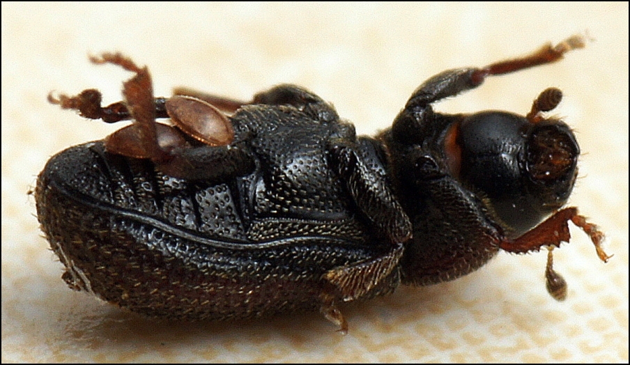 Die beiden Exemplare auf diesem Borkenkäfer beispielsweise zeigten ihr ,,Anhängsel" erst, als ich versuchte, sie abzuhebeln: