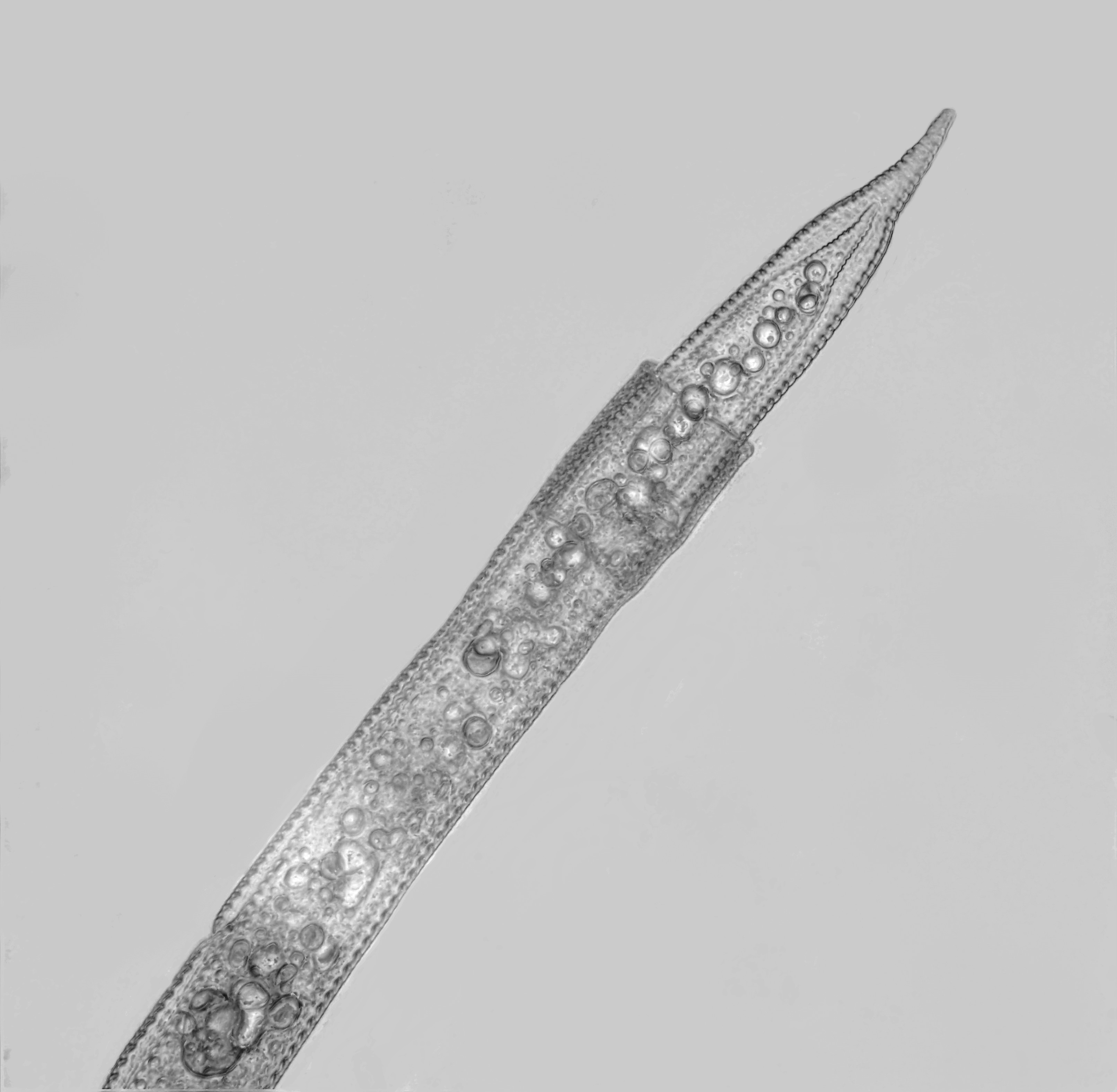 Auf dem 2. Bild ist das Schwanzende zu sehen; die Nematode wuerde sich dann in der Haeutung zu befinden.