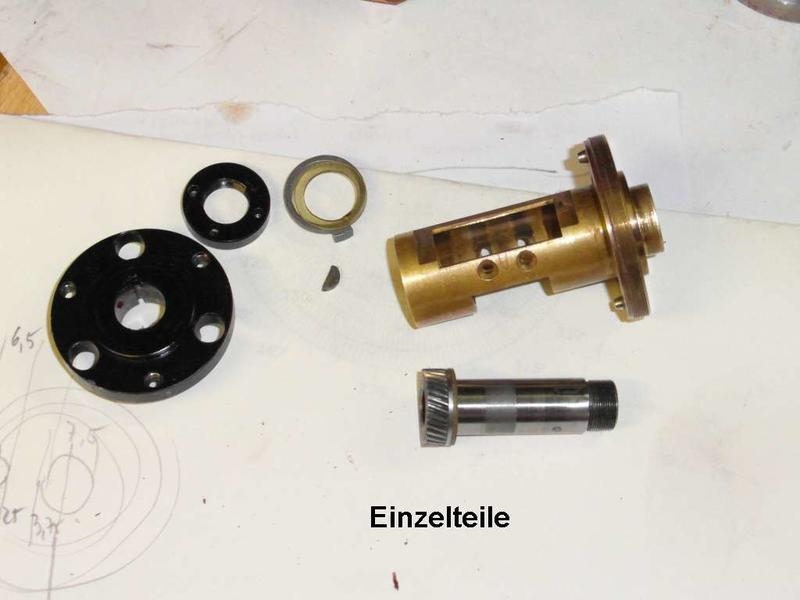 Die Scheibe wurde abgezogen und die Hohlwelle mit dem Zahnrad mit Hilfe von Backenfutter und Reitstock aus dem Gehäuse herausgedrückt.
