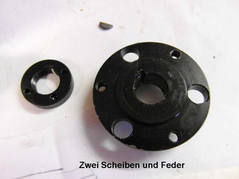 Die kleinere Scheibe war mit einem Feingewinde angeschraubt, die größere Scheibe saß mit einer Passung, und mit einer kleinen Feder gegen Verdrehung gesichert auf der Hohlwelle.