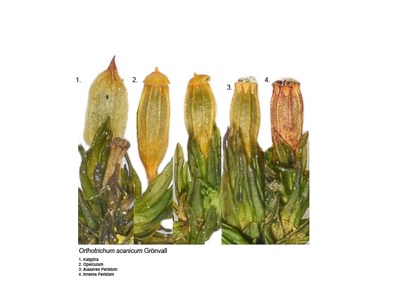 Sind an einem Polster Kapseln mit Kalyptra und Operculum vorhanden, kann O. scanicum mit Hilfe einer 10x Handlupe im Feld sicher angesprochen werden.