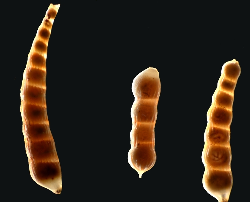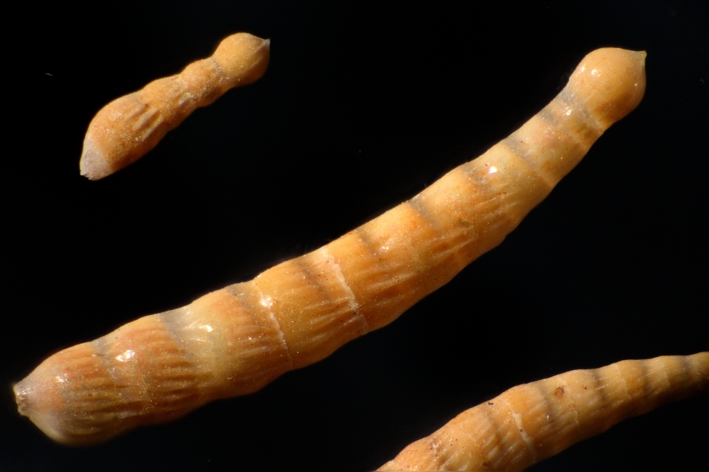 Dentalina (l u. r); Nodosaria (Mitte) 2,5 mm L